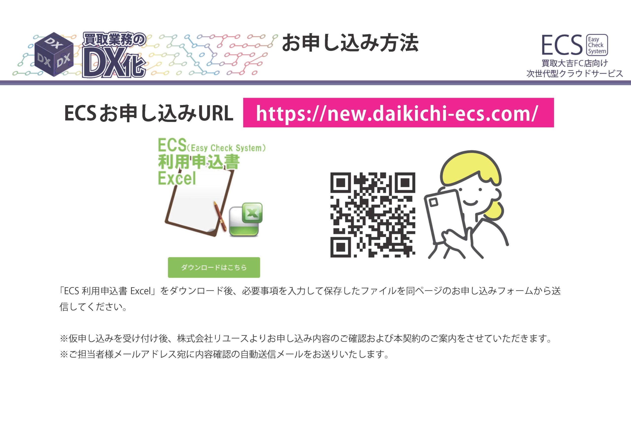 ECS(イージーチェックシステム)にお申し込みをご希望の方は、「ECS 利用申込書 Excel」または「ECS 利用申込書 PDF」をダウンロード後、必要事項を入力して保存したファイルを下記フォームから送信してください。